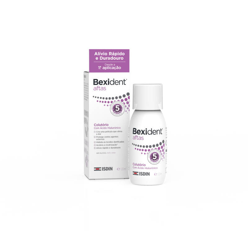 Bexident Aftas colutorio bucal protector es un producto diseñado para el cuidado específico de la cavidad bucal en presencia de aftas, estomatitis aftosa recurrente, úlceras traumáticas y rozaduras, frecuentemente ocasionadas por el uso de ortodoncias o dentaduras postizas. Presenta una fórmula que incluye tecnologías avanzadas dirigidas a proteger y favorecer la recuperación de pequeñas heridas en la boca.
