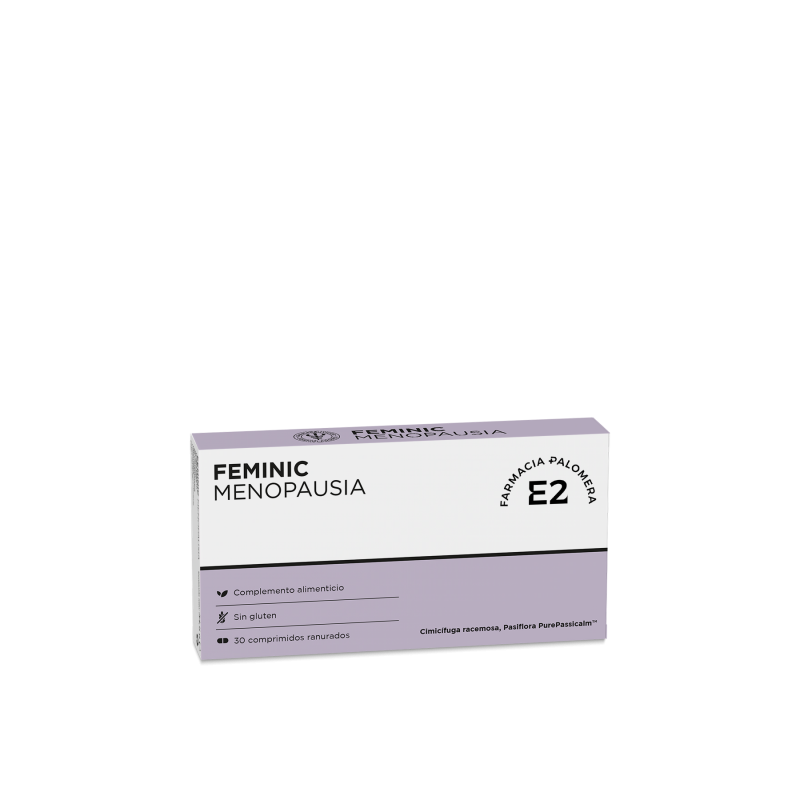 E2 Feminic Menopausia 30 comprimidos es un complemento alimenticio especialmente formulado para mujeres que atraviesan la etapa de la menopausia y perimenopausia. Su composición busca contribuir al bienestar general y favorecer la comodidad durante este cambio fisiológico.