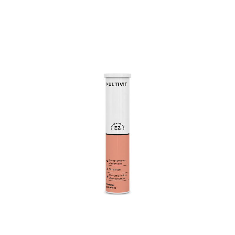 E2 Multivit efervescente es un complemento alimenticio diseñado para aportar una selección equilibrada de vitaminas y oligoelementos que favorecen funciones importantes del organismo.