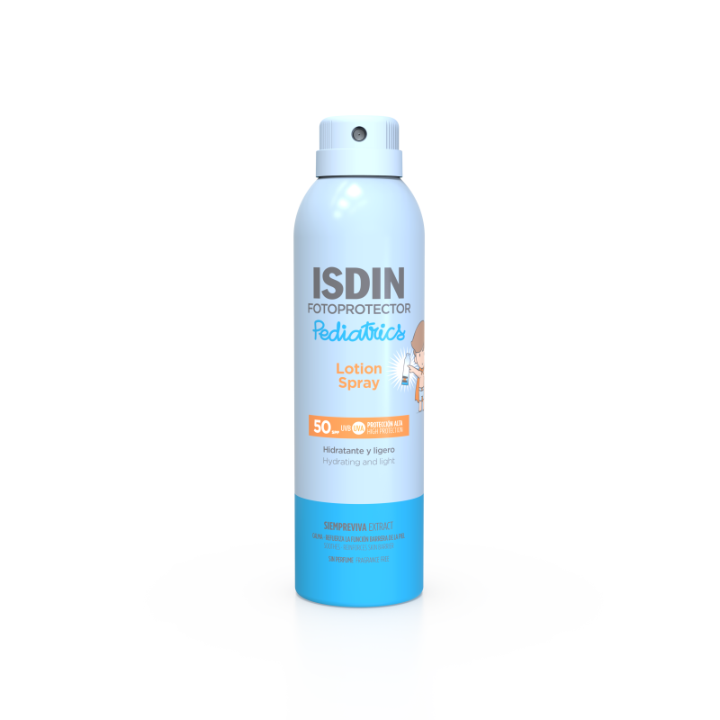 Isdin Pediatrics Lotion Spray SPF50 250 ml es un fotoprotector en formato loción spray especialmente formulado para niños. Su fórmula de rápida absorción ofrece una alta protección solar frente a rayos UVA y UVB. Además, proporciona una hidratación inmediata, ideal para cuidar la piel sensible de los más pequeños durante la exposición solar.